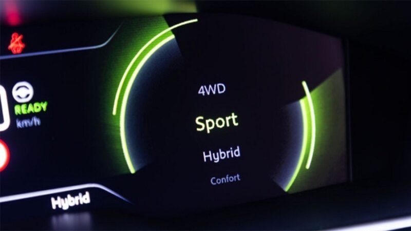 Making the engine react faster to throttle actions, as well as seeking a firmer suspension, more direct steering, and more immediate gear changes in the eight-speed automatic transmission; and finally, 4WD, in which the electric motors always move the respective axles to obtain an all-wheel-drive system that improves stability on slippery surfaces. In sport mode.