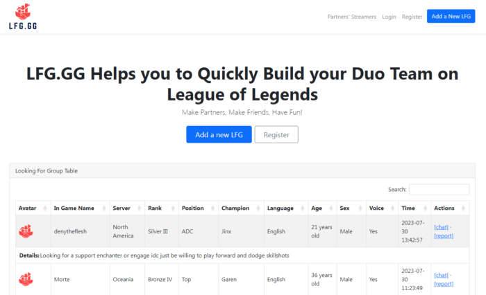 However, LFG does have some redeeming qualities as their solid filters make finding a perfect duo partner a very easy option if you find someone active on the website. The search engine provides you with enough useful information to match with someone, such as the player’s favorite champion and a short bio.