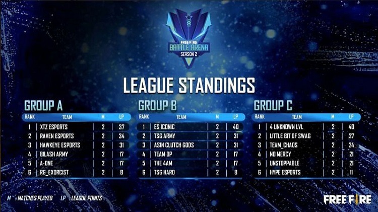 League Stage Table of Free Fire Battle Arena Season 2